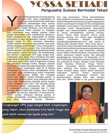 Bawang Soy merupakan supplier bawang goreng dengan total 5 varian rasa Pertama di Indonesia. Bawangsoy didirikan oleh YOSSA SETIADI.